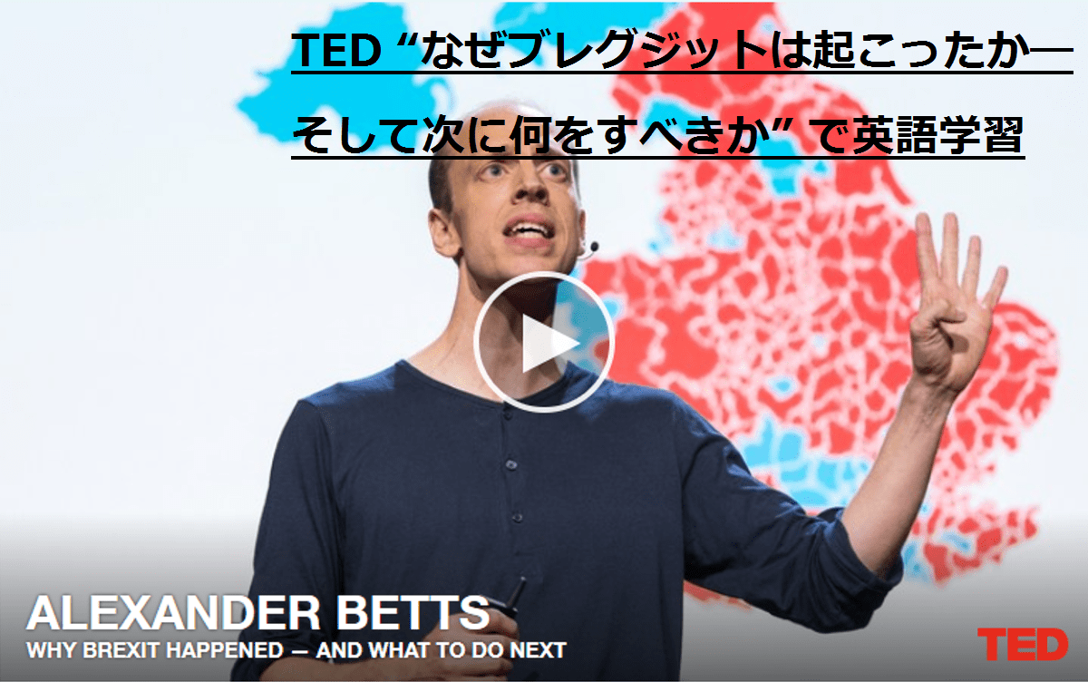 “Why Brexit happened – and what to do next / なぜブレグジットは起こったか―そして次に何をすべきか”というTED Talkで英語を勉強しましょう。ただ聞き流すだけではなく、下にある理解度チェックテストで、きちんと内容が聞き取れていたかを確認できます。ヨーロッパをはじめとして世界に衝撃を与えたBrexit(ブレグジット/英国のEU離脱)。これを一夜の結果としてではなく、裏にある私たちの分断された社会に目を向けるべきだとオックスフォード大学教授のアレクサンダー・ベッツ氏が語ります。ホットなトピックに関する興味深い考察と私たちへのメッセージをお聞きください。